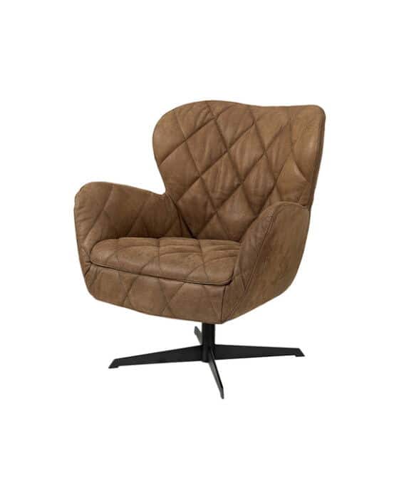 The Jade armchair in brown nubuck with a black foot is guaranteed to be the center of attention in the room with its modern design. The armchair is very comfortable and convenient as it has a rounded and backward-leaning backrest. The leather armchair has a foot with a swivel function, which makes it flexible and can be used in different angles.