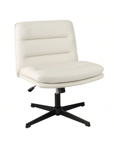 Lænestol med drejefod og højdejustering, udført i et komfortabelt design med stel i sortlakeret metal og sæde og ryg i hvidt PU-læder. Stolen måler 78 – 88 cm i højden over ryggen og 43 – 53 cm i siddehøjde.