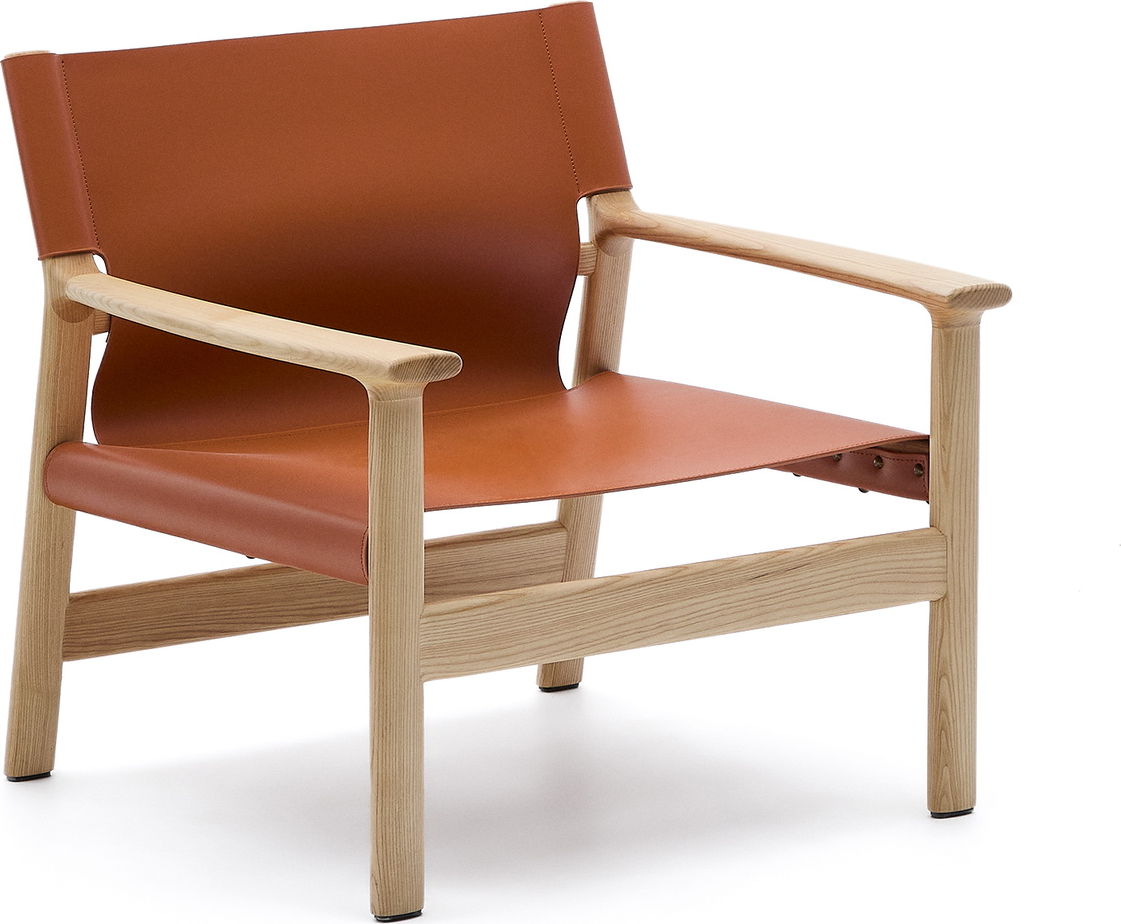 Loungestol Kave Home Jan, asketræ og genanvendt læder, orange, rustik lænestol