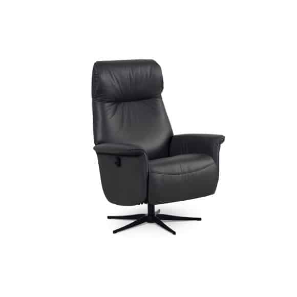 Tristan recliner stol, manuel, m. vippefunktion, fodskammel og armlæn – sort læder/PVC