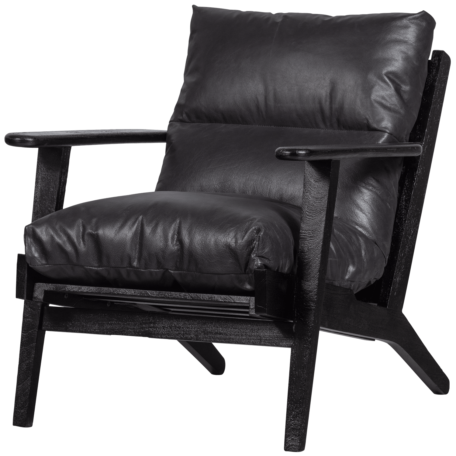 WOOOD Houston lænestol, m. armlæn – sort læder og sort akacietræ